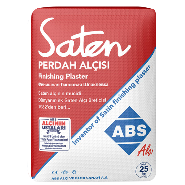 ABS Saten Alçı, iç mekanlarda dekoratif son kat yüzey uygulamaları için özel olarak üretilmiş, yüksek kaliteli ince taneli bir alçı türüdür. Pürüzsüz yüzey elde etmek için kullanılan bu ürün, boyaya hazır zemin oluşturur. Uygulandığı yüzeylerde çatlama ve dökülme yapmaz, kolay sürülebilir yapısıyla işçilik verimliliğini artırır.